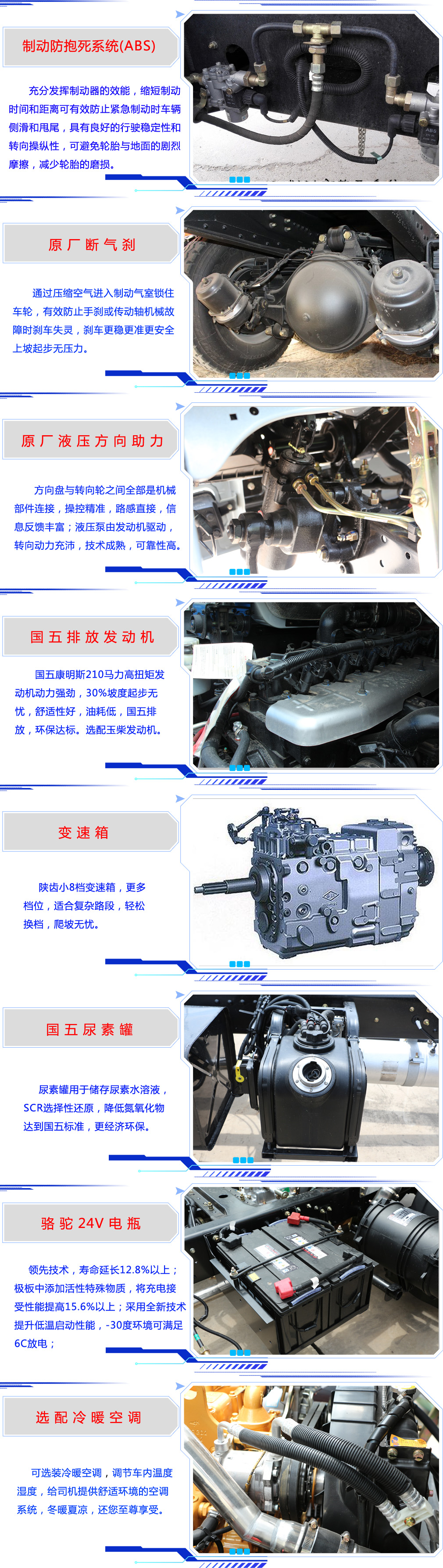 1,罐體有效容積18.55立方米,介質:丙酮水溶液,密度:800千克/立方米,罐體尺寸為(mm): 6900×2400×1550;2,防護材料:Q235A碳鋼,連接方式:左右側面及后下部防護均采用焊接連接,后部防護斷面尺寸(mm):150×50,后部防護離地高度(mm):550;3,ABS生產廠家: 東科克諾爾商用車制動系統(十堰)有限公司,型號:3631010-C2000;4,文字噴涂位置,車輛顏色及局部細節可變化;5,隨底盤選裝駕駛室,選裝駕駛室遮陽板與側面臥鋪開窗口。 |