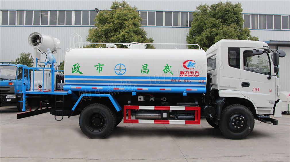 霧炮灑水車,又稱為多功能綠化灑水車。用于城市道路、大型廠區、部隊、園林等單位清潔路面、衛生、防塵、澆水、噴灑農藥等,以達到美化環境的作用。該車加裝風送式噴霧機組,可用于工地降塵,農場打藥等。灑水車由以下幾部分組成:專用車底盤、罐體、管道系統、操作系統。