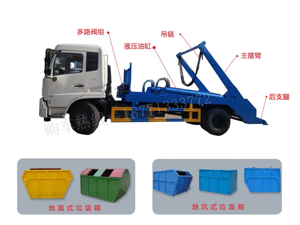 擺臂式垃圾車適用全國通用垃圾斗,帶自卸功能,液壓操作,垃圾斗可自吊上吊下,擺臂一次工作循環(huán)時(shí)間:60S。該車的特點(diǎn)是貨斗與車體分開,能實(shí)現(xiàn)一臺(tái)車與多個(gè)貨斗聯(lián)合作業(yè),循環(huán)運(yùn)輸,充分提高了車輛的運(yùn)輸能力,特別適用于短途運(yùn)輸,如環(huán)衛(wèi)部門對(duì)城鎮(zhèn)垃圾的清理、運(yùn)輸?shù)取?/span>