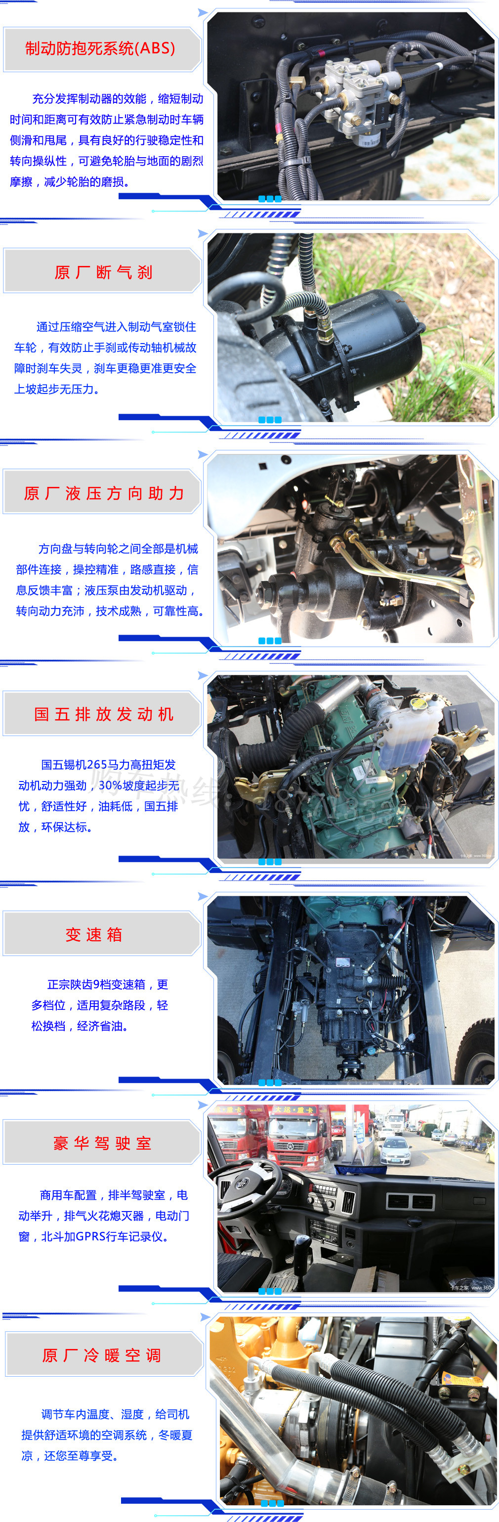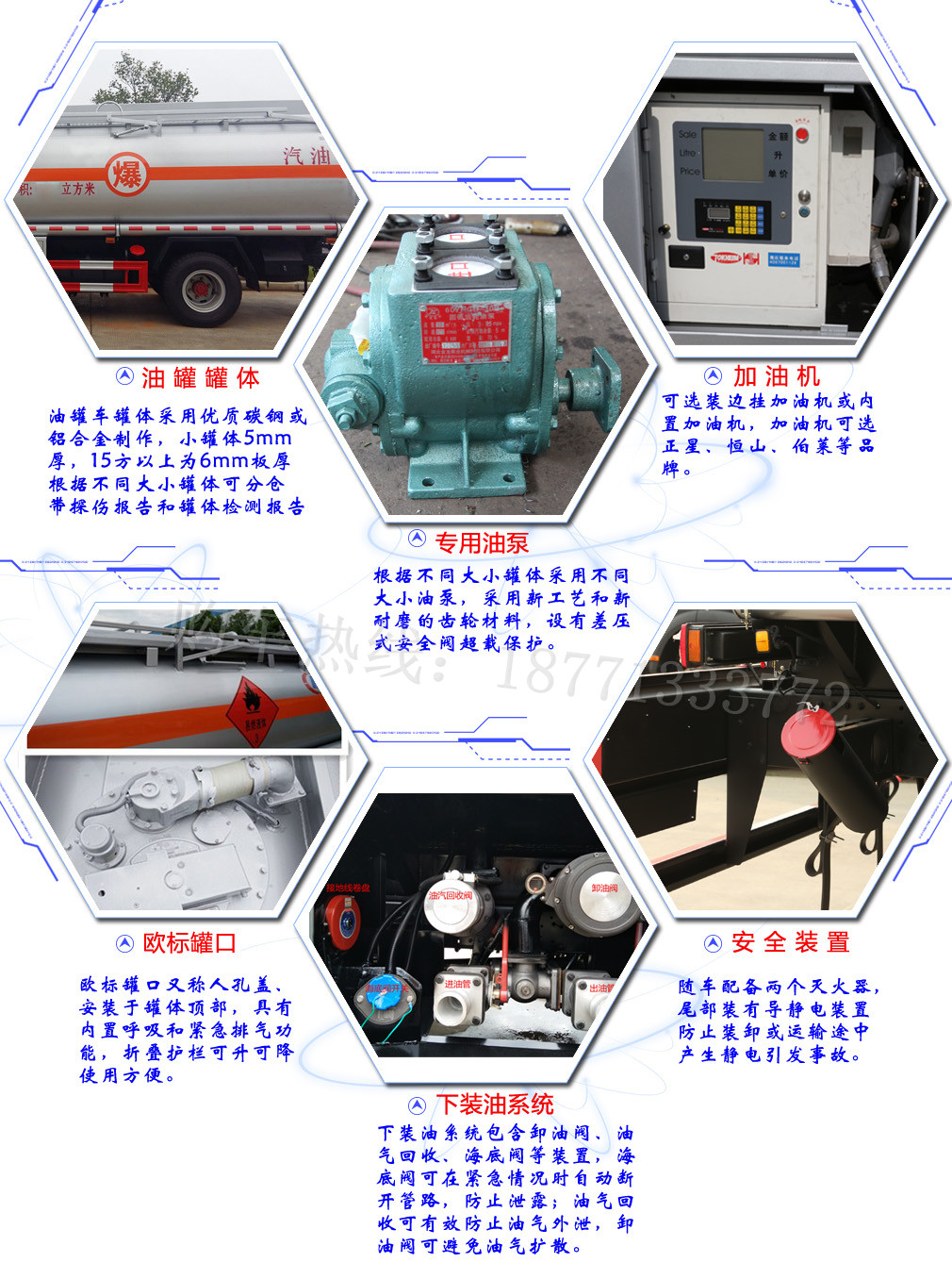 該車適用于危險品運輸,運輸介質:柴油,汽油,煤油,介質密度分別為:0.83噸/立方米, 0.75噸/立方米, 0.80噸/立方米,類項號:3;罐體有效容積:22.7立方米, 罐體外形尺寸(長×長軸×短軸)(mm)為:8400×2450×1560。防護材料:Q235A碳鋼,連接方式:左右側面及后部防護均采用焊接連接,后部防護斷面尺(mm):120×50, 后部防護離地高度(mm):520。僅采用底盤子午線輪胎和帶ABS的底盤,該車前輪安裝盤式制動器,前置排氣管,裝配限速裝置,限速80km/h。安裝帶有衛星定 |