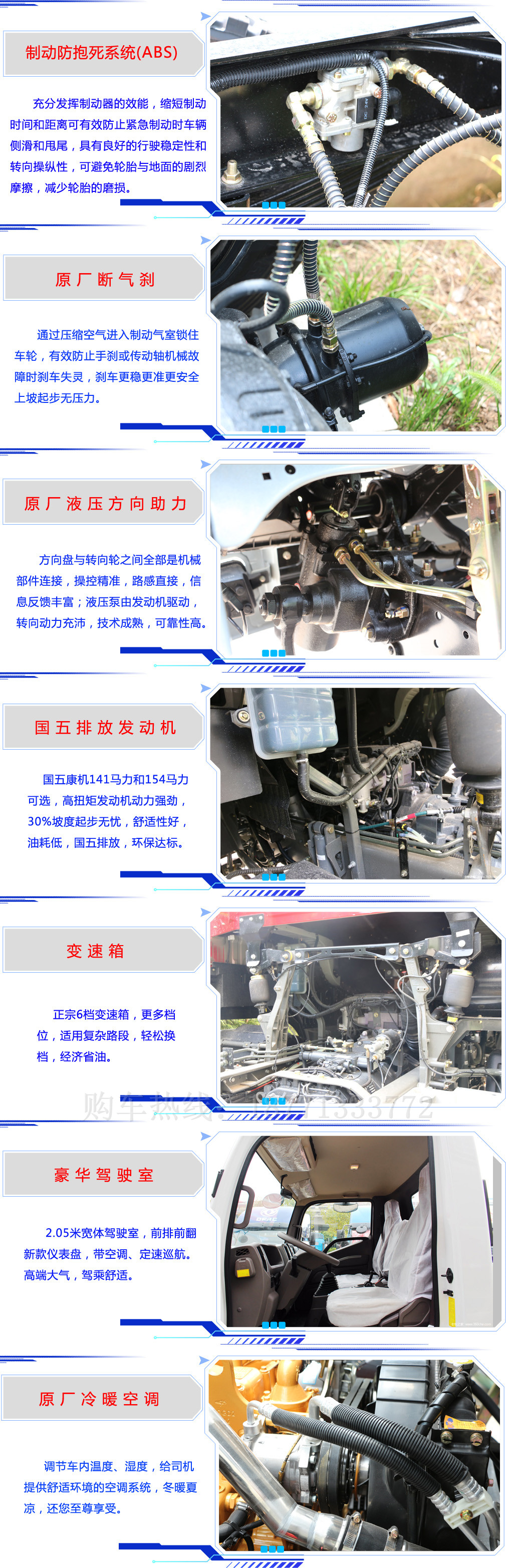 1、罐體有效容積5.2立方米,運輸介質:液態污物,密度800千克/每立方米,軸距(mm)/罐體外形尺寸(長×長軸×短軸)(mm)的對應關系為:3360/3700×1700×1200,3800/4150×1600×1150;2、側防護及后下部防護裝置均采用Q235A材質,均采用焊接連接, 后部防護斷面尺寸(mm):300×50,后部防護離地高度(mm):450。3、ABS廠家:威伯科汽車控制系統(中國)有限公司,型號:44600XXXX0。4、文字噴圖位置、車輛顏色及局部細節可變化。5、隨底盤選裝駕駛室。 |