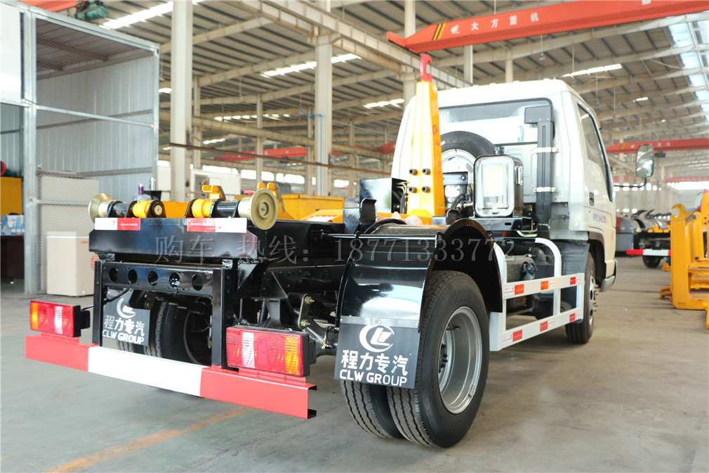 車廂可卸式垃圾車采用高新設計可擺得鉤臂,一車可帶多個大廂,裝卸方便,實現車廂的二次吊裝并使機構最為省力,具有結構簡單,操作穩定方便,高效率裝卸,節省人力等優點。鉤臂垃圾車可根基用戶要求配備若干個垃圾轉運箱。轉運箱可作為一個簡易、美觀、環保的垃圾轉運站,最大限度提高了車輛的使用效率。