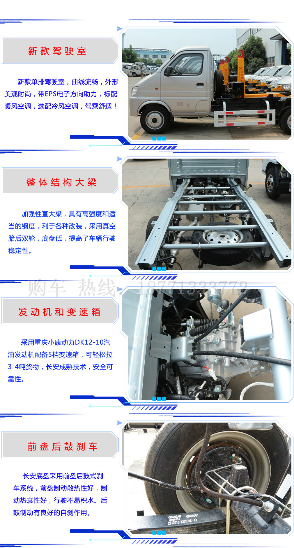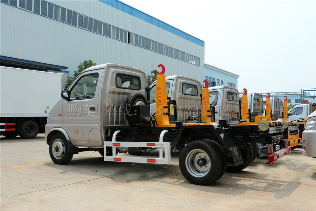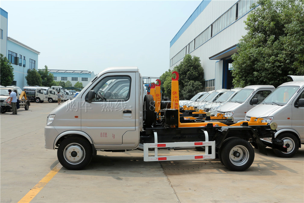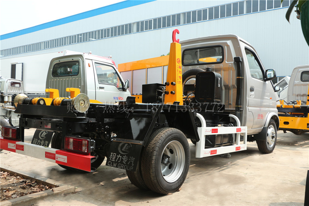 車廂可卸式垃圾車采用高新設計可擺得鉤臂,一車可帶多個大廂,裝卸方便,實現車廂的二次吊裝并使機構最為省力,具有結構簡單,操作穩定方便,高效率裝卸,節省人力等優點。鉤臂垃圾車可根基用戶要求配備若干個垃圾轉運箱。轉運箱可作為一個簡易、美觀、環保的垃圾轉運站,最大限度提高了車輛的使用效率。