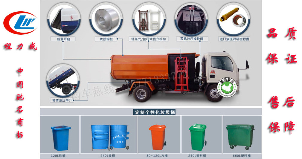 掛桶垃圾車的特點是一個車能配幾十個垃圾桶,能實現(xiàn)一臺車與多個垃圾桶聯(lián)合作業(yè),循環(huán)運輸,充分提高了車輛的運輸能力,特別適用于短途運輸,如環(huán)衛(wèi)部門對城鎮(zhèn)垃圾的清理、運輸?shù)。同時,掛桶垃圾車還可以加裝其它功能,形成其它多功能掛桶垃圾車,如:掛桶壓縮式垃圾車、掛桶式泔水垃圾車、掛桶式對接垃圾車等。