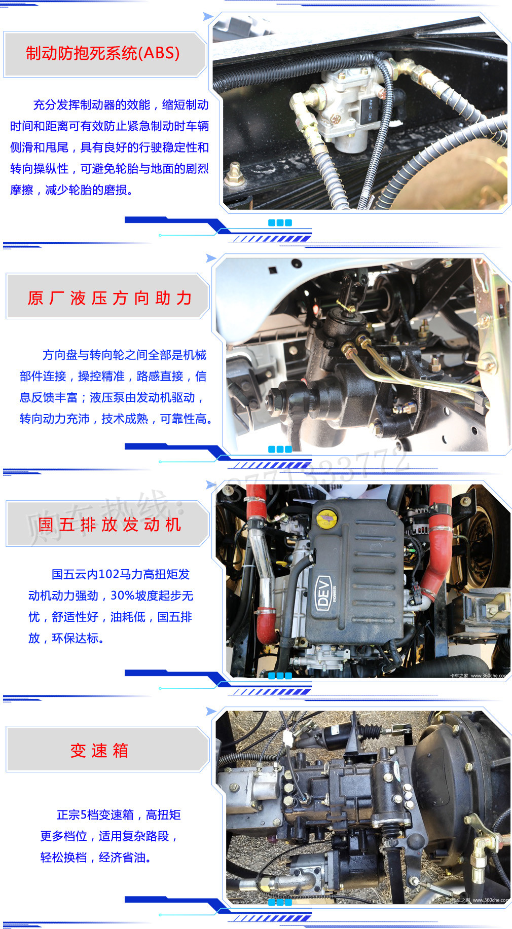 1、防護材料:Q235A碳鋼,連接方式:左右側面及后下部防護均采用焊接連接,后下部防護斷面尺寸(mm):120×50,后下部防護離地高度(mm):410。2、 ABS型號:CM4XL-4S/4K(4S/4M),ABS生產廠:廣州科密汽車電子控制技術股份有限公司.3、整車長度與軸距對應關系為:4760/2600;4960/2800;4、選裝掛鐵桶裝置。5、車輛顏色、文字噴涂及局部細節可變化。6、發動機與油耗值對應關系為(L/km):WP2.1Q82E50/12.86,D19TCIE1/12.76,SD4D2 |