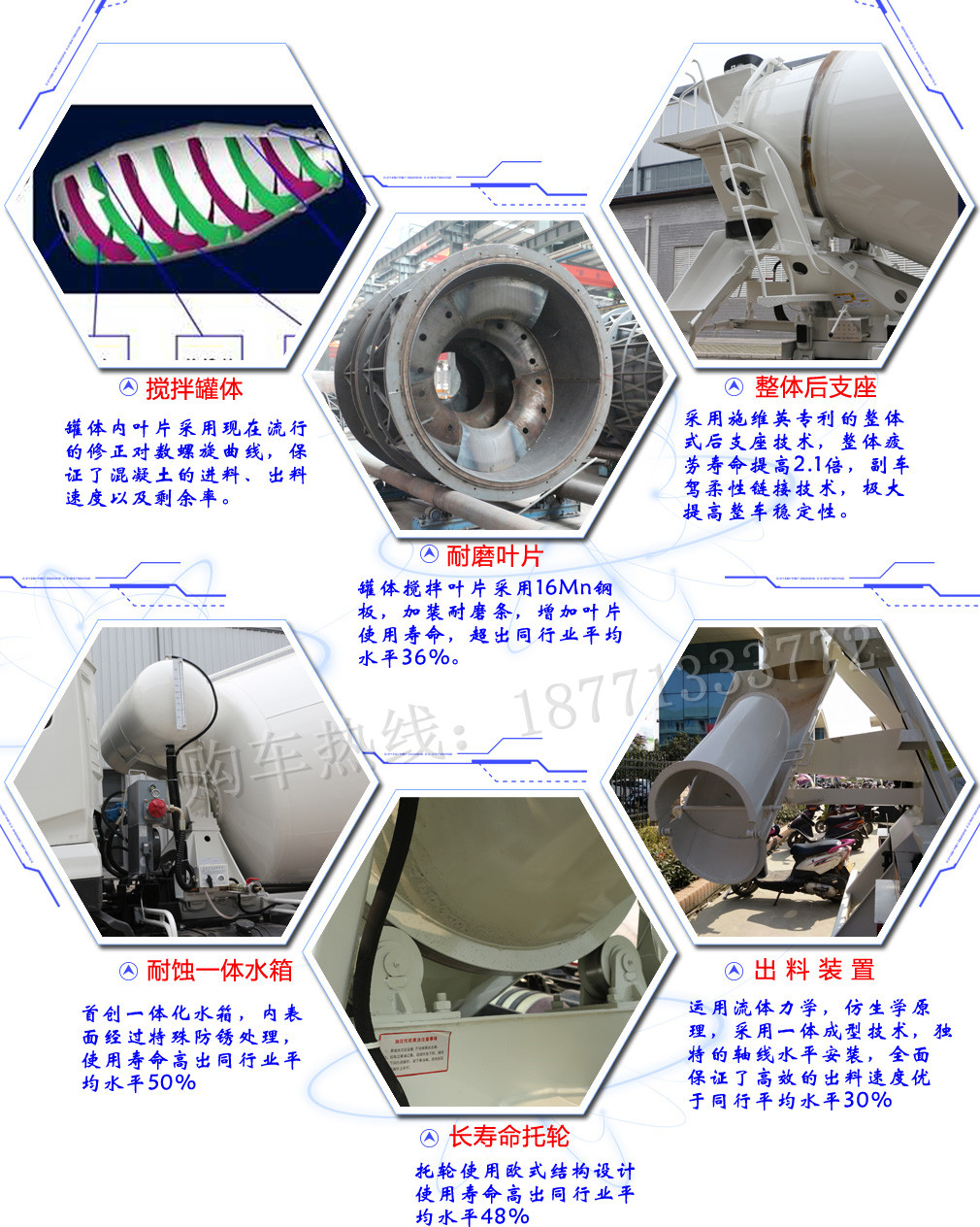 攪拌車,是用來運送建筑用的混凝土的專用卡車;由于它的外形,也常被稱為田螺車、橄欖車。這類卡車上都裝置圓筒型的攪拌筒以運載混合后的混凝土。 在運輸過程中會始終保持攪拌筒轉動,以保證所運載的混凝土不會凝固。運送完混凝土后, 通常都會用水沖洗攪拌筒內部, 防止殘余混凝土硬化占用空間, 使攪拌筒的容積越來越少。
