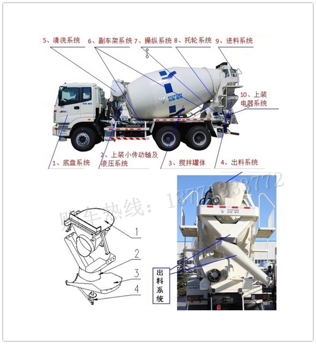 攪拌車,是用來運送建筑用的混凝土的專用卡車;由于它的外形,也常被稱為田螺車、橄欖車。這類卡車上都裝置圓筒型的攪拌筒以運載混合后的混凝土。 在運輸過程中會始終保持攪拌筒轉動,以保證所運載的混凝土不會凝固。運送完混凝土后, 通常都會用水沖洗攪拌筒內部, 防止殘余混凝土硬化占用空間, 使攪拌筒的容積越來越少。