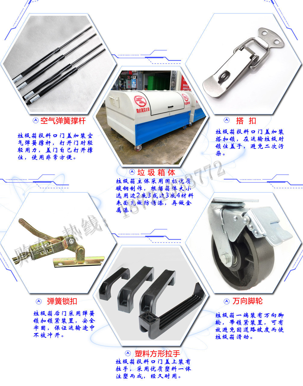 環衛垃圾箱可以用于戶外垃圾的投放和貯存,也可以作為運輸垃圾箱使用,對垃圾進行集中輸送。環衛垃圾箱具有結構簡單、牢固,耐磨、抗壓、耐腐蝕、抗老化等優良特性,能夠長期安放于室外,抵抗來自于環境變化帶來的影響。同時,配合垃圾運輸車的標準規格設計,讓垃圾的運輸更方便、快捷!