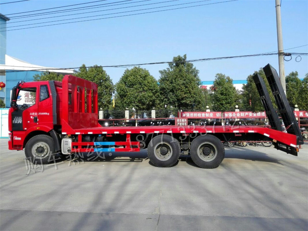 平板運輸車又名為工程機械運輸車、平板車、拖車,主要用于運輸一些像挖掘機,裝載機,收割機一樣的不可拆卸物體。平板運輸車是生活中常見的大型載重貨車,這種車一般被廣泛用于工廠,工地等大型生產或工程所在地,平板運輸車的承重能力強的特點使其在經濟發展過程中起了重要作用。