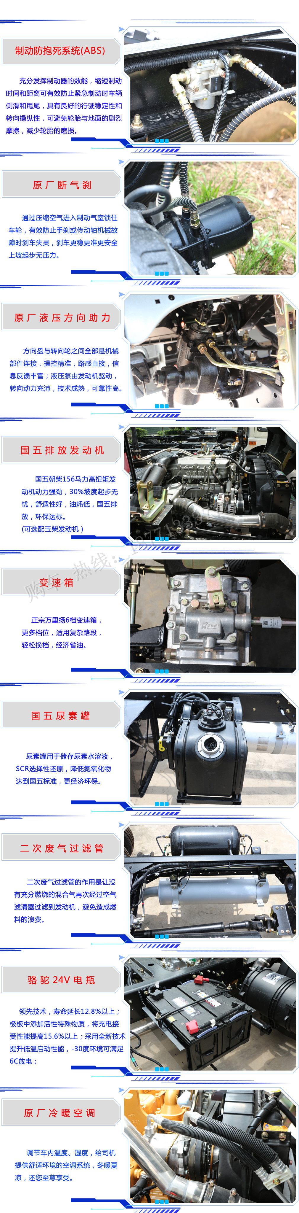 防護材料:Q235A碳鋼,連接方式:左右側面防護豁免,后下部防護與副梁采用焊接連接,后下部防護尺寸:50×100(mm),離地面高度400mm。隨底盤選裝前面罩,前保險杠,前組合燈具.ABS型號:ABS/ASR-24V-4S/4M,ABS型號廠家:襄陽東風隆誠機械有限責任公司。文字噴圖位置和車輛顏色可變化。 |