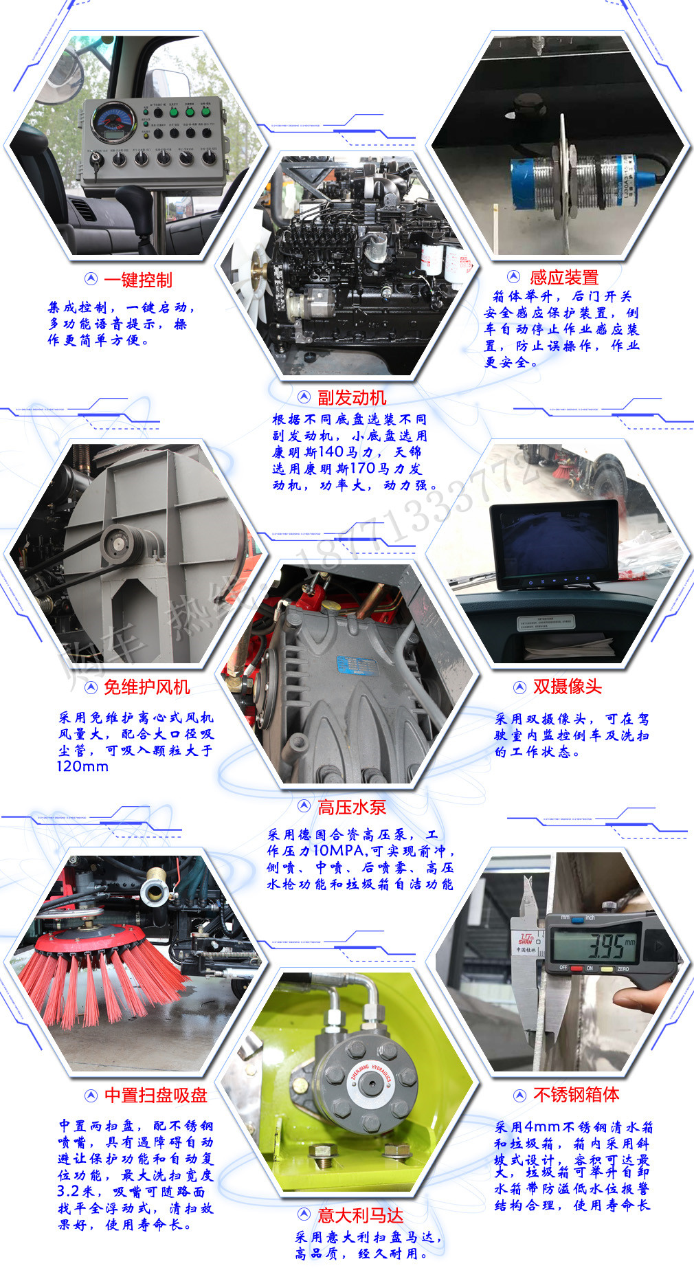 我公司吸塵車是國內首創的 “無二次揚塵污染、功能上優于傳統掃路車”的全新高科技產品!具有吸塵范圍廣、吸凈率高、吸口無二次揚塵、出風口無粉塵排放、工作效率高等優點,是環衛清潔及物料回收的優選產品。適用于于易產生揚塵污染的多粉塵、高濃度和大密度的工礦企業;適用于城市高架、快速道路及橋隧的快速清掃保潔;適用于城市主干道、高等級公路及高速公路的清掃保潔。