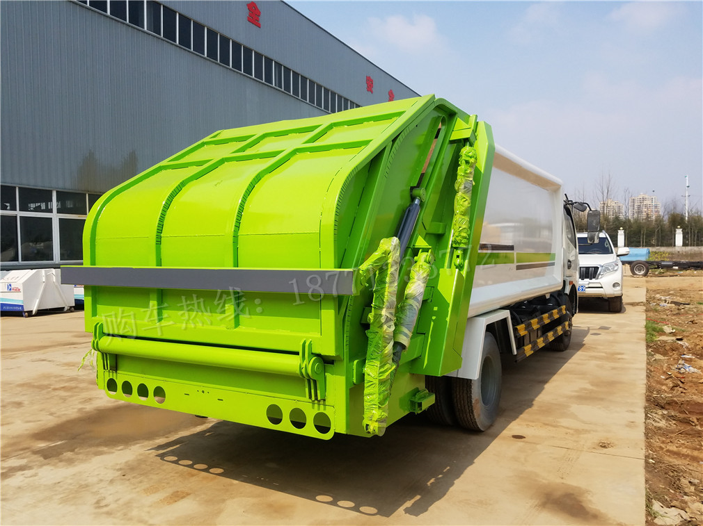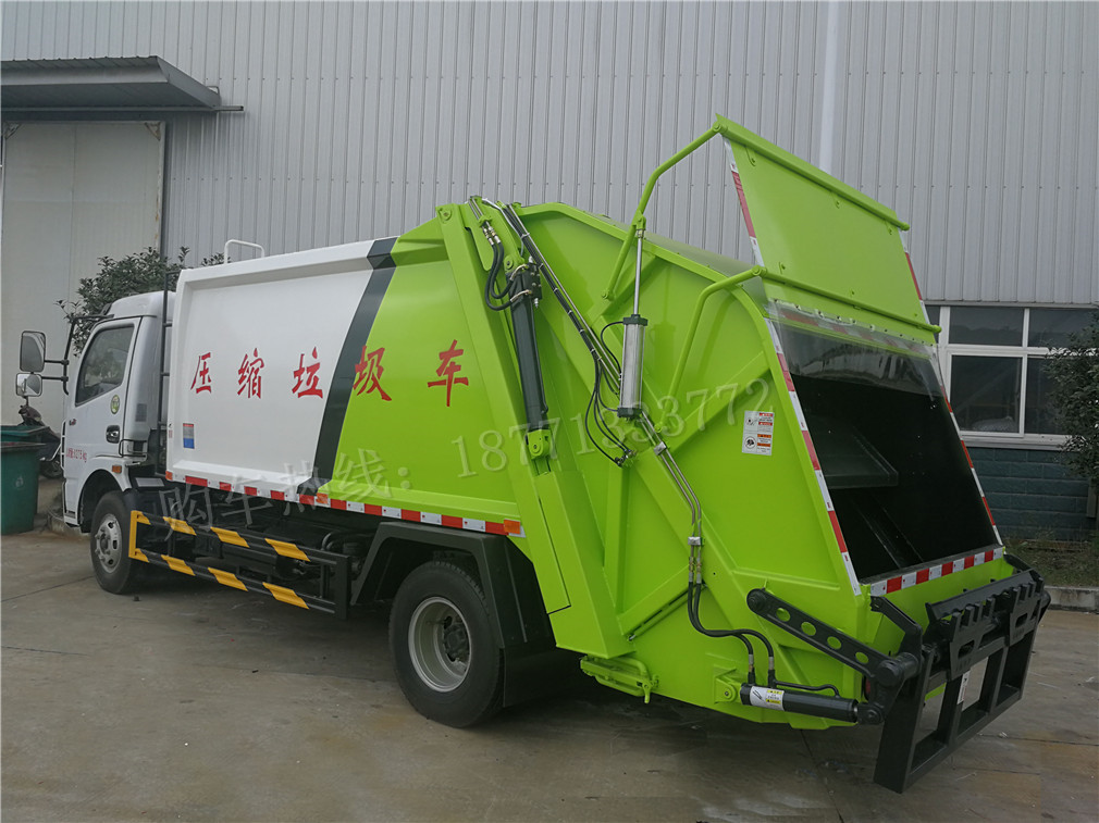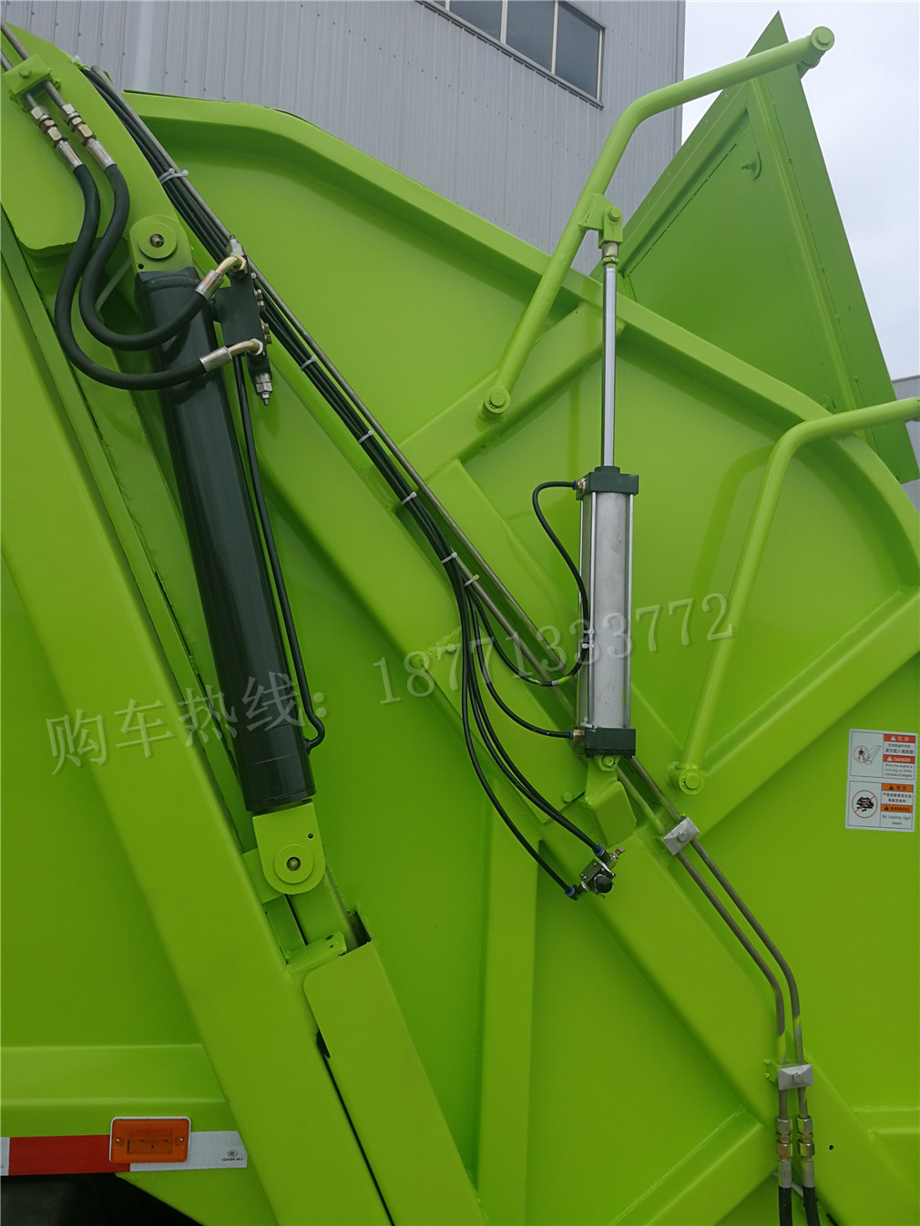 壓縮式垃圾車采用機電液一體化技術,借助機、電、液聯合自動控制系統,通過車廂、填裝器和推鏟等專用裝置,實現垃圾倒入、壓碎或壓扁、強力裝填,把垃圾擠入車廂并壓實和推卸。其主要特點是垃圾收集方式簡便、高效、具有自動反復壓縮以及蠕動壓縮功能,壓縮比高,裝載質量大,作業自動化,動力性、環保性好,整車利用效率高。