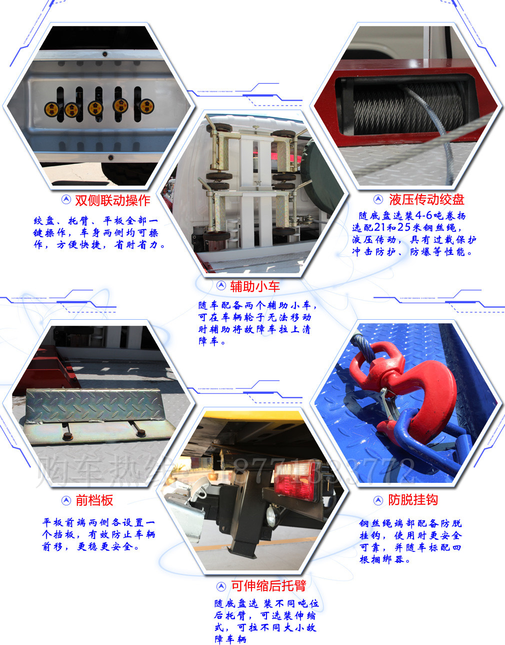 清障車全名為道路清障車,又稱拖車、道路救援車、拖拽車,具有起吊、拽拉和托舉牽引等多項功能,清障車主要用于道路故障車輛,城市違章車輛及搶險救援等。清障車按類別主要分為:拖吊連體型、拖吊分離型,一拖一型,平板一拖二型,多功能清障車,液壓自動夾緊型